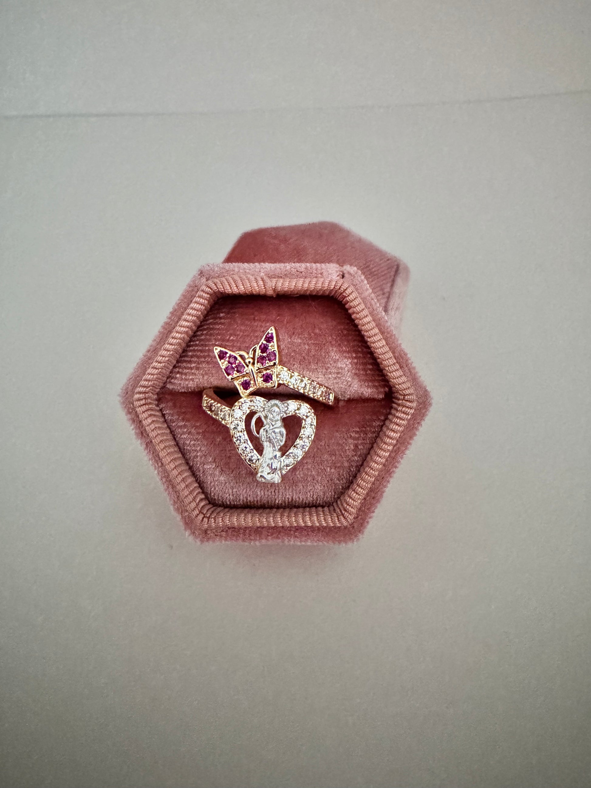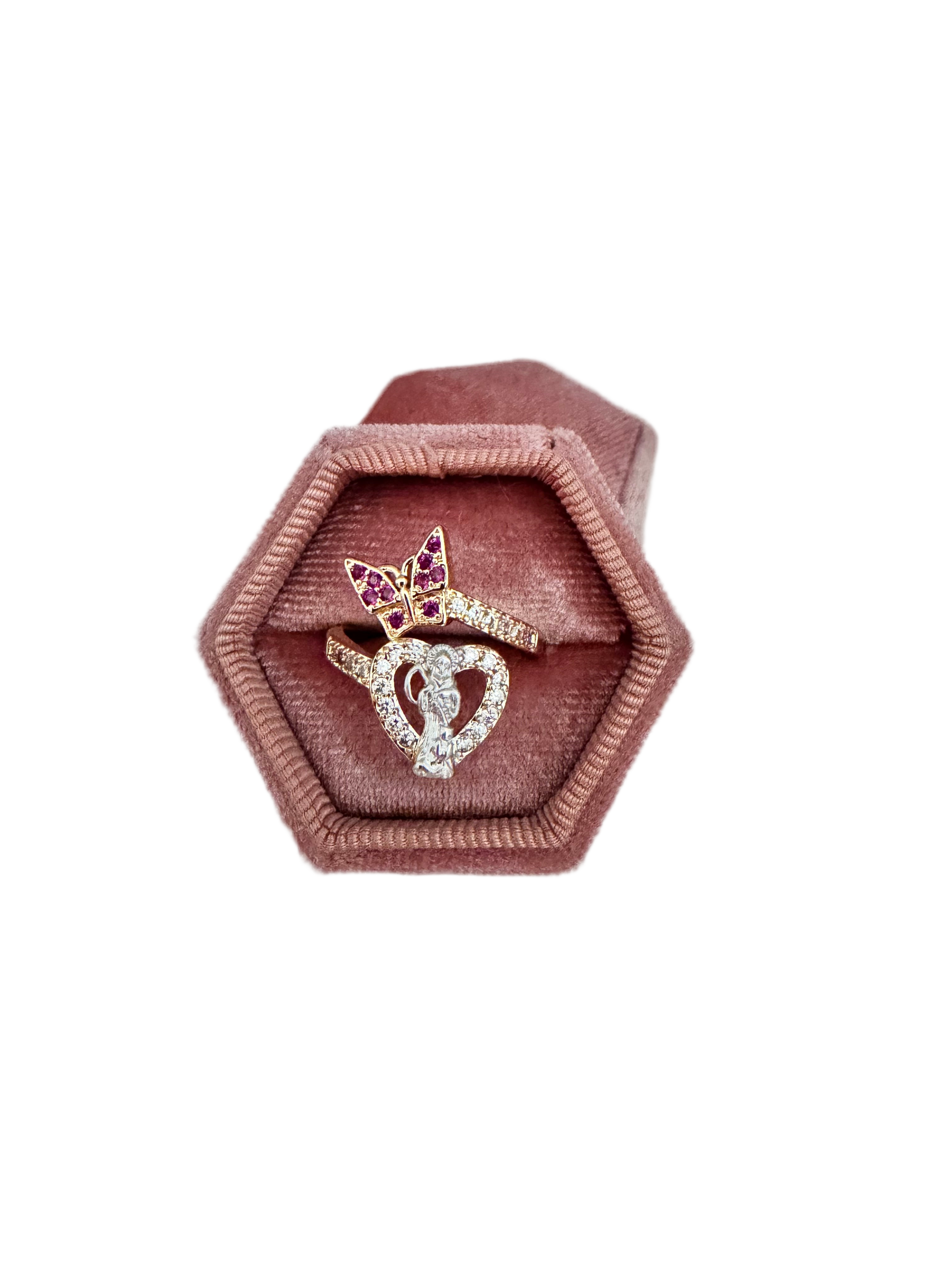 Santa Muerte Mariposa Magenta Ring