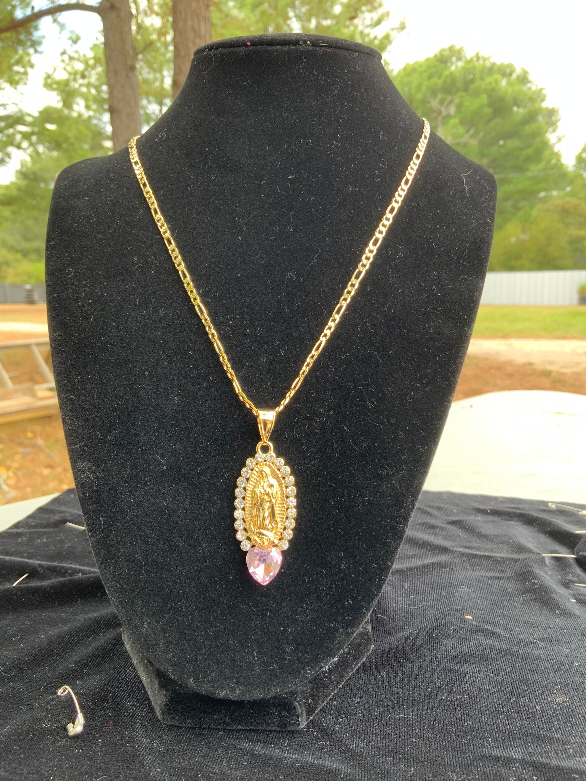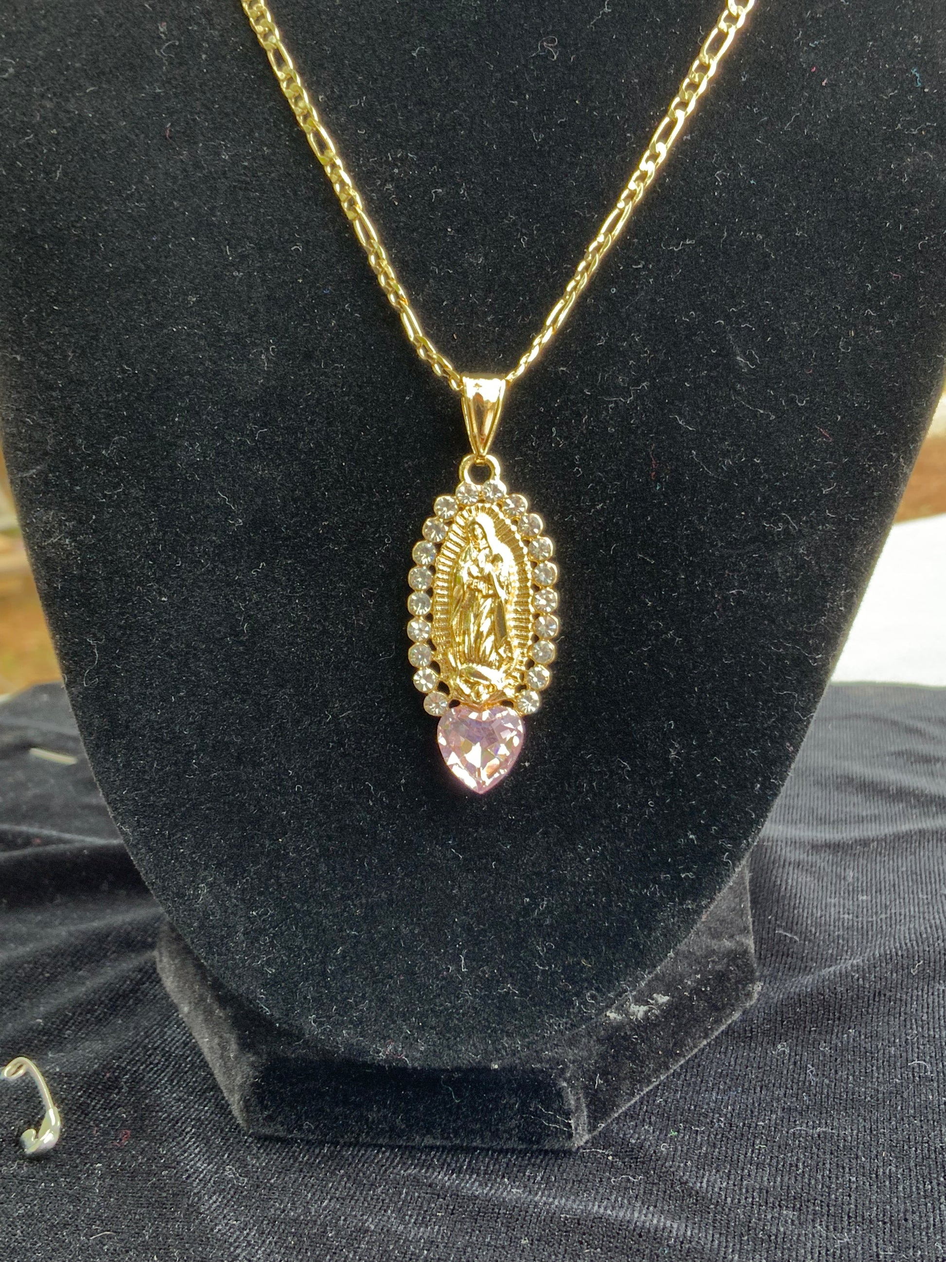 Pink Heart Virgencita Oval Necklace