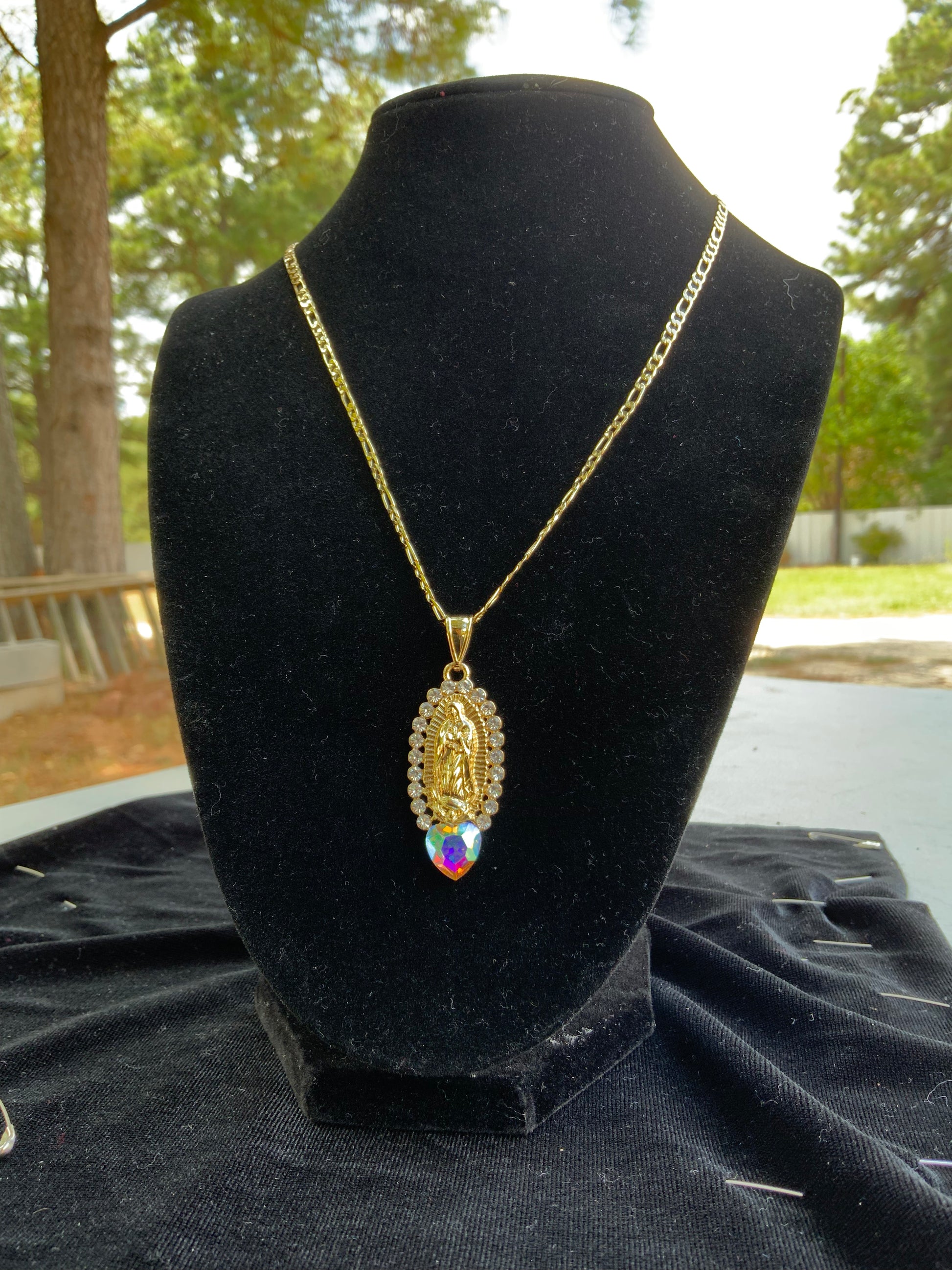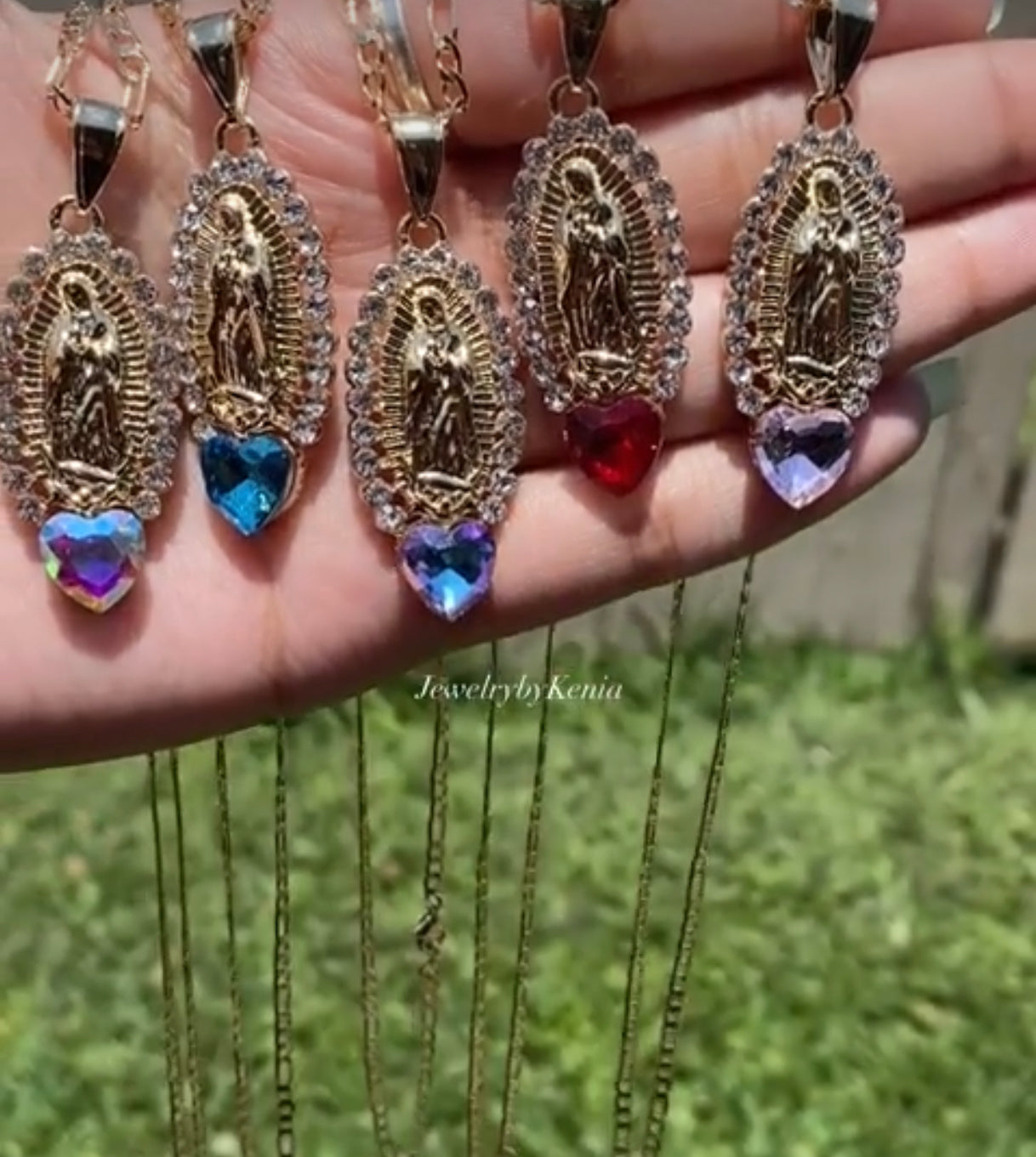 Colorful Heart Virgencita Oval Necklace